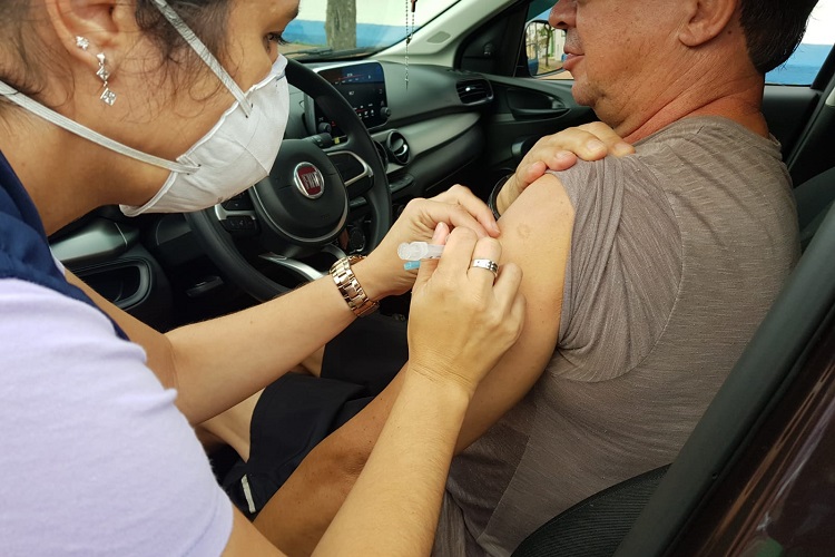 Em um drive-thru de vacinação na manhã desta quarta, antes mesmo das 7h30, horário em que começava a vacinação, uma fila de carros se formou nas proximidades da Secretaria de Saúde. A vacinação é voltada a idosos e profissionais da saúde. Serão disponibilizadas somente 400 doses.