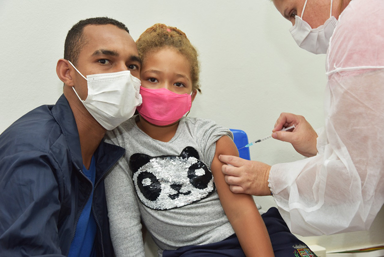 Lívia Rodrigues, de 9 anos, chegou na instituição acompanhada pelo pai, Noé, para receber a primeira dose. “Muito bom que vieram até aqui, porque eu e minha esposa trabalhamos e não conseguimos levar ela pra fazer vacina”, declarou o pai. E a pequena Lívia também aprovou a ação. “Eu quero receber a vacina pra não ficar doente, pra poder brincar na pracinha com minhas amigas”, disse.