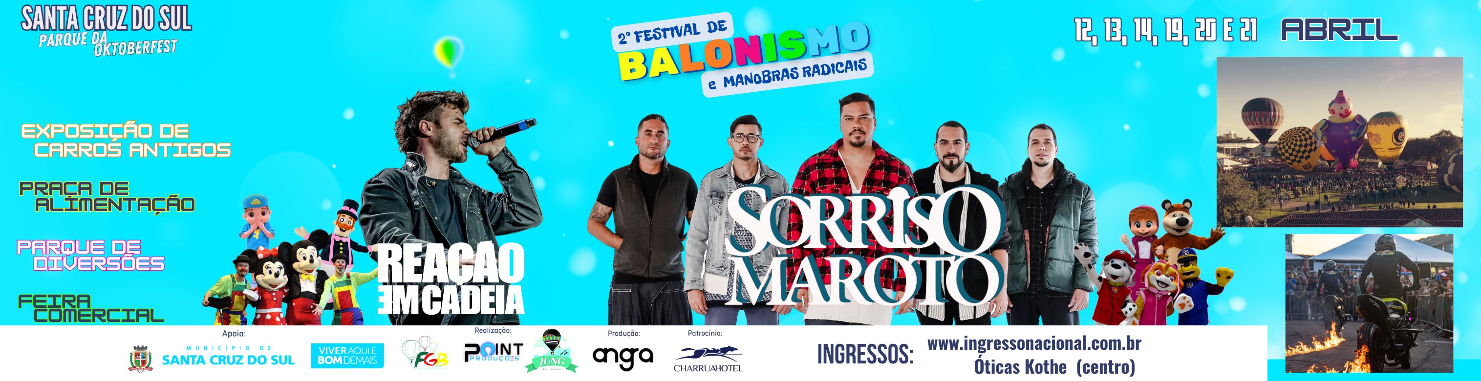 - *Ingressos para o parque e para os shows devem ser adquiridos pelo site www.ingressonacional.com.br e na Joalheria e Ótica Kothe (Centro).