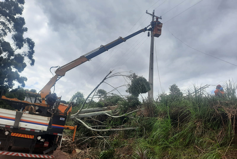 Na localidade de Linha São Martinho, a agonia deve terminar neste domingo. Algumas partes da região já tiveram a luz restabelecida, nas redondezas do Salão Butzge, por exemplo. Quatro equipes da Conecta, empresa terceirizada pela RGE, estão se dividindo para atender toda a região. Nesta tarde, uma delas atuava em Linha São Martinho, onde um eucalipto caiu, atravessou a estrada e arrebentou fios fundamentais para a distribuição de energia elétrica. O serviço deve ser concluído nas próximas horas.