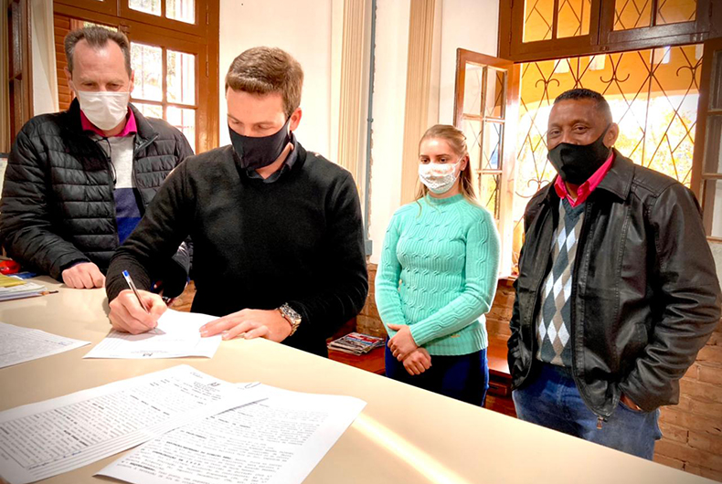 Durante a tarde desta sexta-feira, foi realizada a assinatura da escritura pública em cartório, com a presença do prefeito Maiquel Silva, vice-prefeito José Valtair dos Santos, secretário de finanças Claudeomir Karnopp, secretário de agricultura Alessandro Kappel, proprietária da área Rosângela Hessel e família. Em seguida, a comitiva se deslocou até a área para o registro oficial com demais autoridades municipais.