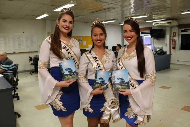 A Gazeta Grupo de Comunicações recebeu nessa quinta-feira, 31, a visita do prefeito Maiquel Silva e das soberanas, a rainha Katiele Braga e as princesas Carolina Rachor e Tamires Hansen. “Nós estamos participando como membros da comissão organizadora e auxiliamos as meninas que irão nos suceder”, comentou a rainha.