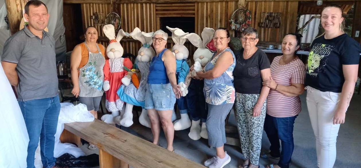 A Secretaria de Educação, Cultura, Desporto e Turismo de Vale Verde e o Centro de Referência em Assistência Social (Cras), com apoio da Emater/RS-Ascar, trabalham na confecção da decoração de Páscoa (foto). Uma série de atividades está prevista para ocorrer junto à toca do coelho, que svai er montada no galpão crioulo, ao lado do Centro de Cultura, no centro da cidade.