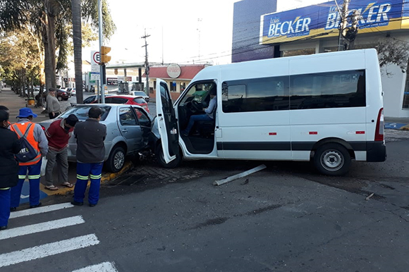 Dois veículos colidiram na manhã desta sexta-feira, 22, no Centro de Santa Cruz do Sul. O acidente aconteceu por volta das 8h10. Um Siena, com placas do município, trafegava pela Rua Ramiro Barcelos e colidiu com uma van da Prefeitura de Mato Leitão, que seguia pela Tenente Coronel Brito.