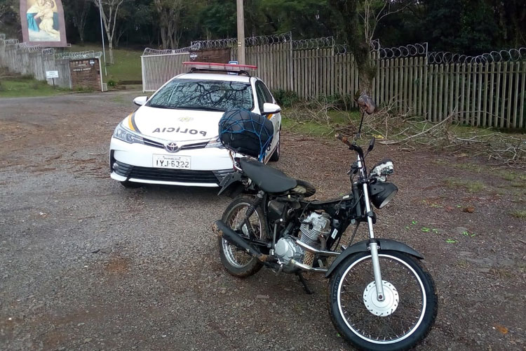 O primeiro caso aconteceu ainda pela manhã, quando os policiais receberam uma denúncia anônima de que uma motocicleta estava abandonada em um matagal, na Rua Irmã Olinda, no Bairro Faxinal Menino Deus. A Honda Titan, de placa IMF 2221, havia sido furtada no dia 10 de novembro do ano passado, quando estava estacionada na frente de uma agência bancária na Rua Marechal Floriano.