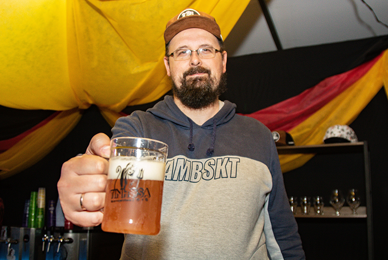 Um dos estandes é da cervejaria HBier, que está desde 2016 na Oktoberfest. O proprietário Augusto Dopke conta que, na última grande festa, que aconteceu em 2019, as cervejarias estavam em um único local. “No ano passado ganhamos esse espaço maior e cada um pode trabalhar com seu estande. Foi um resultado legal que tivemos e por isso decidimos repetir a dose.”