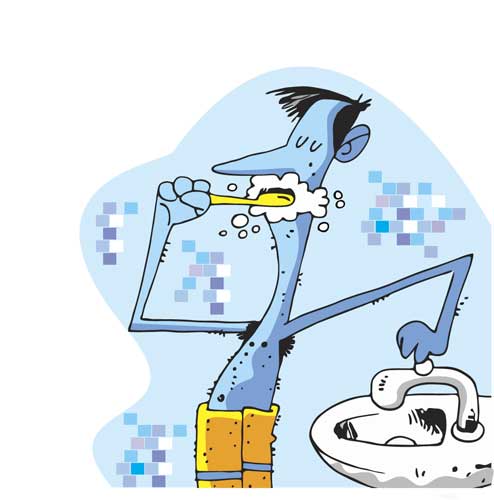 Ao escovar os dentes, lavar o rosto ou as mãos, mantenha a torneira fechada. A economia é de 12 litros em casas a 80 litros em apartamentos. Fique atento também se a torneira não continua pingando mesmo quando fechada.