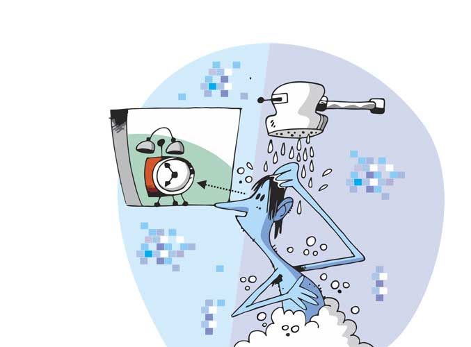Se cada pessoa reduzir em cinco minutos o tempo de banho diário, daria para economizar milhões de litros de água por mês.