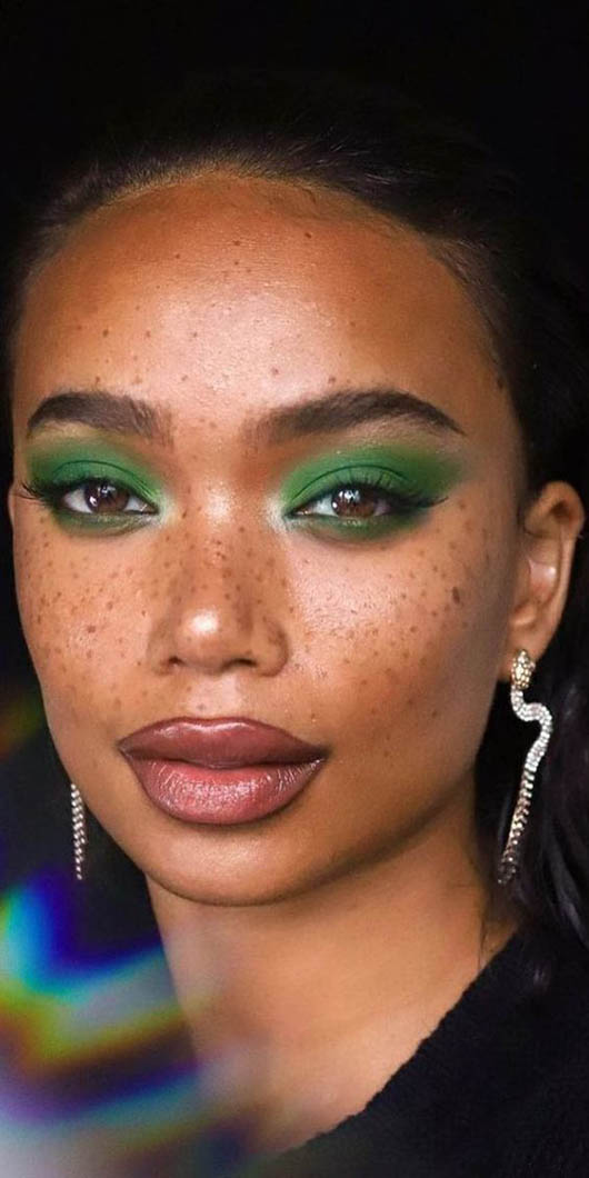O verde também está invadindo as nail arts e as maquiagens. Nas unhas, a ideia é apostar em uma esmaltação descontraída e inusitada. Quando usada na make, é uma ótima aposta para festivais e festas nas quais seja possível fugir do óbvio.