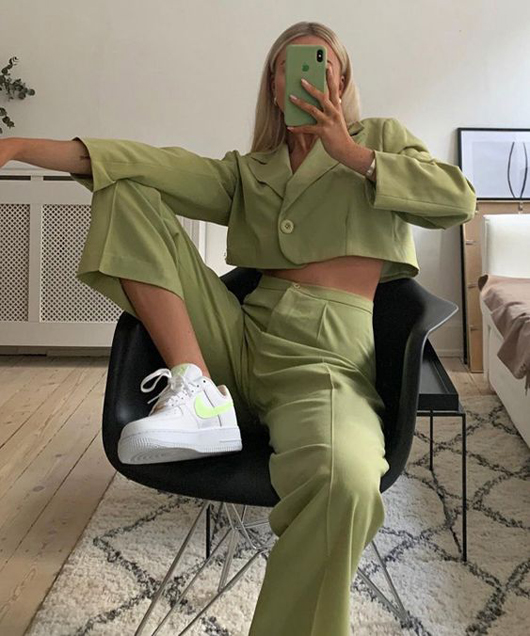 Assim como os acessórios, os sapatos também podem ser um “pontinho verde” no look. Imagine uma composição com roupa toda branca e uma sandália ou tênis verde?! Super moderno e interessante!