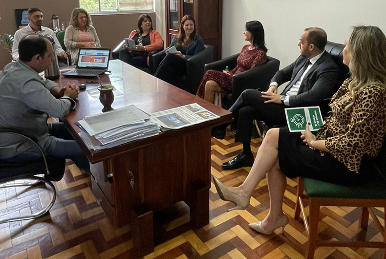 O prefeito de Venâncio Aires, Jarbas da Rosa, e os secretários do Desenvolvimento Econômico, Trabalho e Turismo, Nelsoir Battisti, e da Fazenda, Fabiana Keller, receberam na última terça-feira, 12, a presidente da Junta Comercial, Industrial e de Serviços do Rio Grande do Sul (Jucis-RS), Lauren de Vargas Momback, e o coordenador do programa Descomplica RS, Tomas Holmer. A dupla visitou o município acompanhada da delegada regional do Conselho de Contabilistas, Aline Gauer, para tratar da implantação do programa Tudo Fácil Empresas RS, que proporciona a abertura de empresas com atividades de baixo risco em até dez minutos, de forma on-line e gratuita.
