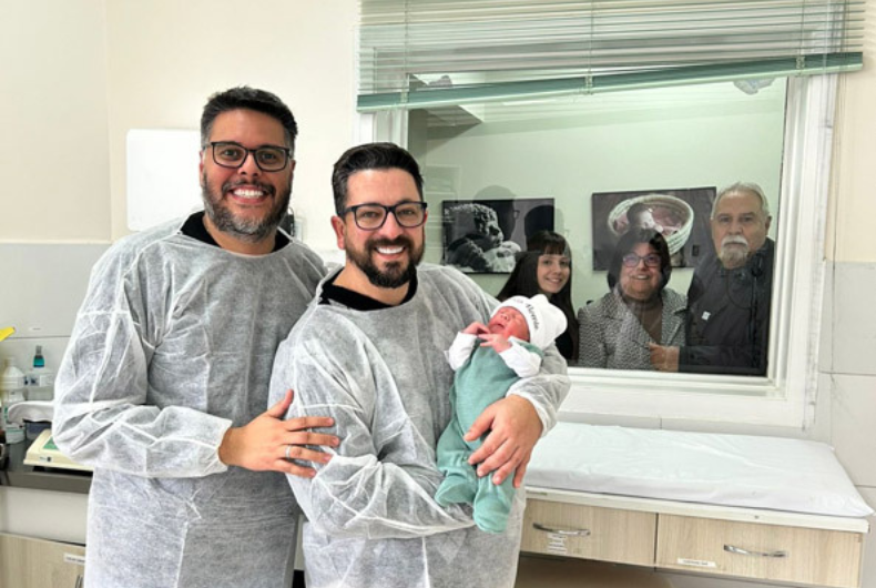 Júlio e Édson se conheceram em 2021 e à medida que o relacionamento foi evoluindo, a paternidade passou a ser um objetivo em comum dos dois. “Aos poucos, se tornou um desejo forte e presente em nossas conversas”, conta Júlio. Foi então que eles iniciaram as pesquisas sobre adoção e barriga solidária. Os dois buscaram por informações no Centro de Reprodução do Hospital Bruno Born, onde ficaram impressionados com a equipe e obtiveram todo o suporte necessário.