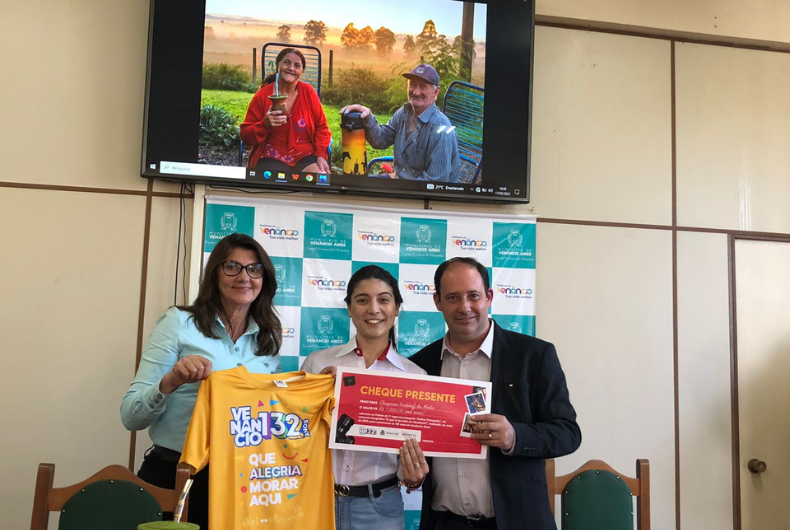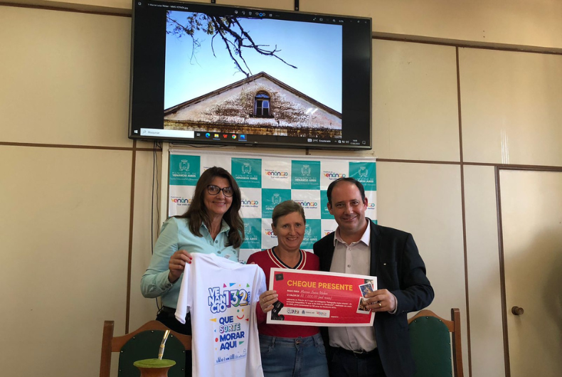 As autoras das duas fotografias vencedoras do concurso fotográfico “O que te faz feliz em Venâncio?”, que integrou a programação alusiva ao aniversário de 132 anos de Venâncio Aires receberam a premiação nessa quarta-feira, 17. A entrega foi feita pelo prefeito Jarbas da Rosa e pela vice Izaura Landim.