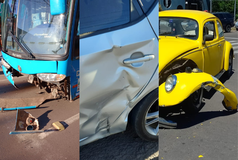 O primeiro sinistro foi registrado por volta das 6h30, na Avenida Nestor Frederico Henn. Um ônibus, conduzido por um homem de 51 anos, colidiu na traseira de um Ford Fiesta, dirigido por um homem de 49, próximo a um semáforo. Ambos os veículos seguiam no sentido Bairro Arco-Íris/Centro, quando o carro reduziu a velocidade. O condutor do ônibus não conseguiu parar a tempo e causou a batida. Não houve feridos.