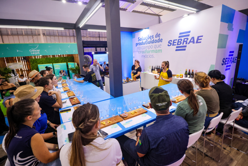 O estande do Serviço Brasileiro de Apoio às Micro e Pequenas Empresas (Sebrae) realizou na tarde de ontem a Oficina de Harmonização do Campo à Mesa. Durante o evento, os participantes tiveram uma degustação guiada de vinhos, espumantes, queijos, doce de leite e mel, todos oriundos de agroindústrias gaúchas. O objetivo é mostrar a qualidade dos produtos da agricultura familiar e como eles podem ser combinados para gerar novos sabores.