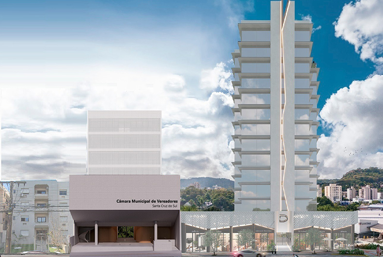Mais um passo importante foi dado nesta segunda-feira, 23, para a Câmara de Vereadores de Santa Cruz do Sul ter sua sede própria. Foi apresentado aos vereadores, o projeto arquitetônico desenvolvido pela empresa Santini & Rocha para a construção do novo prédio do Legislativo, no terreno entre as ruas Marechal Deodoro e Sete de Setembro.
