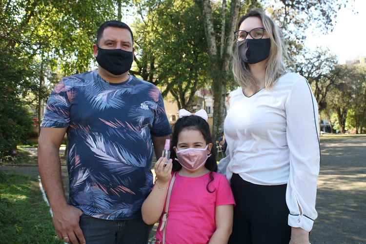 “A mãe dela é muito preocupada com a segurança e o uso de máscara e álcool”, revelou a madrasta Diuliana de Bastiani, que veio com o pai de Duda, Anderson da Rosa Garcia, de São Miguel do Oeste, na divisa entre Santa Catarina e Paraná.