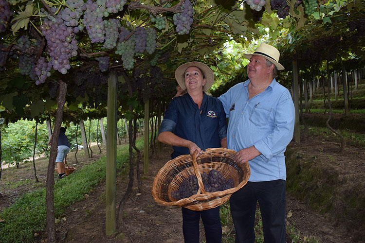 Uma das atrações do local é o programa Colha e Pague, onde o visitante pega sua cesta e, além de passear pelos parreirais e observar a beleza da plantação, pode escolher seus cachos e levar para casa. “A pessoa tem a garantia de que o cacho não passa por diversas mãos antes de ir parar na sua casa”, observa Persch.