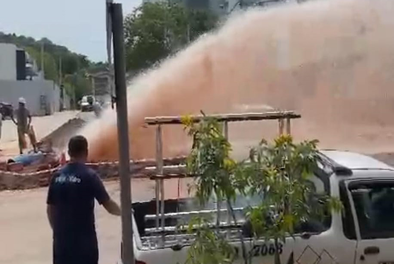 Um vídeo que circula nas redes sociais nesta quarta-feira, 13, mostra o alagamento causado pelo rompimento de uma adutora de água em Santa Cruz do Sul. O caso foi registrado durante a manhã, na esquina das ruas Thomas Flores com a João Werlang, no Centro.