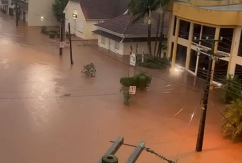 Sinimbu é um dos municípios mais afetados pelas fortes chuvas registradas nos últimos dias. Na madrugada desta terça-feira, 30, a água do Rio Pardinho saiu do leito e invadiu casas e estabelecimentos comerciais no Centro do município. Diversas ruas estão bloqueadas. A igreja matriz e a Praça do Monumento ao Imigrante estão debaixo da água.