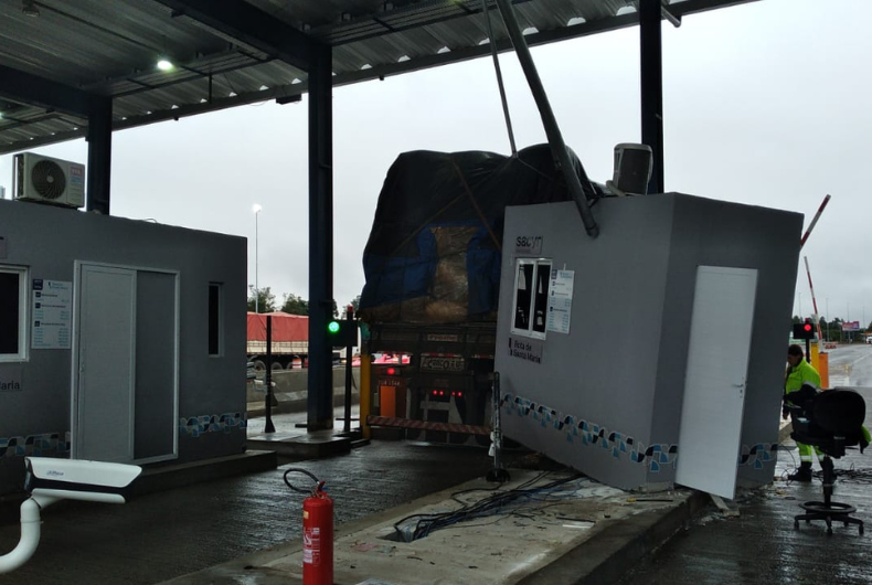 Um acidente registrado na manhã desta quinta-feira, 4, chamou a atenção de motoristas que trafegavam pela praça de pedágio de Venâncio Aires, localizada no quilômetro 86 da RSC-287. Um caminhão Ford Cargo, carregado com tabaco, colidiu contra uma das cabines de cobrança. A estrutura foi parcialmente danificada.