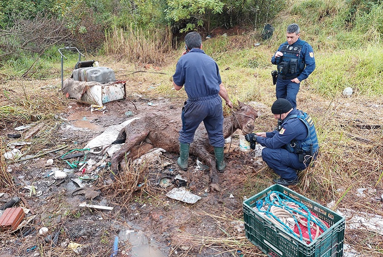 “Devido às baixas temperaturas e à chuva, esse animal estava fraco, extremamente magro e não conseguindo levantar mais, ficando dentro de uma poça de água. Uma situação muito triste. O animal vivo ainda, querendo ter mais uma chance de vida. Num primeiro momento, pensamos até em uma eutanásia, pela situação em que o animal se encontrava, fraco e debilitado, num local de difícil acesso. Mas ele tem ainda um sopro de vida, então estamos lutando pela vida dele”, declarou Tiago.