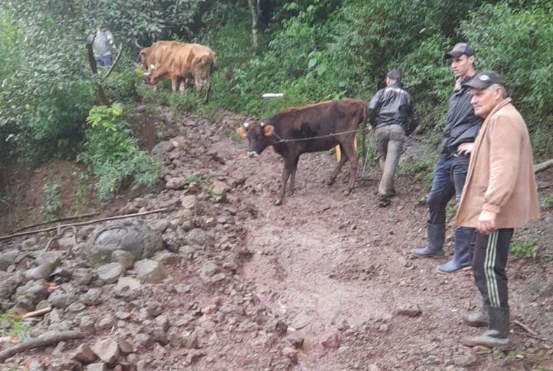 Se nós aqui não chegamos a ter tanto transtorno por causa das fortes chuvas, a situação é muito diferente em dezenas de localidades em toda a região. E isso vale tanto para as lavouras quanto para a criação de animais. A foto em destaque foi enviada pelo produtor Elo Bugs, de Alto Rio Pequeno, interior de Sinimbu, onde conduz propriedade ao lado da esposa Clarice e do filho Ederson. Eles agora estão tendo muitas dificuldades para alimentar os animais que possuem.