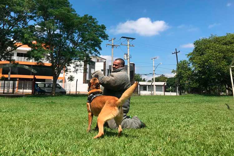“Não pode ser muito agressivo nem muito manso, tem que saber lidar com outros animais e com barulho. O cachorro só faz aquilo que a gente ensina, então, se ele estiver cometendo erros, nós é que precisamos voltar atrás no treinamento e corrigir.”