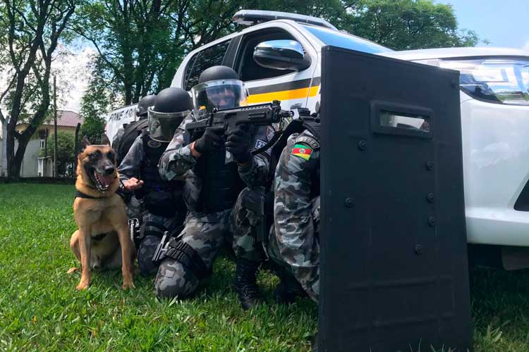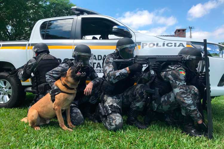 “Varia conforme o que nos é solicitado, muitas vezes pelo próprio Comando Geral. Na rodoviária é feita ação de faro em busca de entorpecentes, principalmente nos ônibus que vêm da Capital. Já nas escolas eles participam de apresentações dentro do Proerd (o Programa Educacional de Resistência às Drogas e à Violência). Então, além do lado policial, tem a questão social do uso do cão”, explica o soldado Rafael Koch Manardi, um dos cinotécnicos do POE.