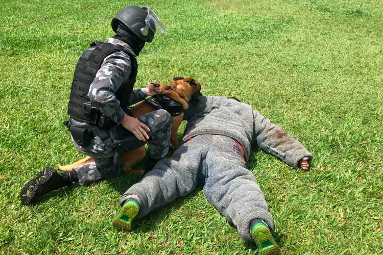 O treinamento dos cães também começa cedo. Enquanto alguns estão preparados aos dez meses, outros podem levar até dois anos. Os treinamentos incluem simulações de intervenção tática, em que o cão deve imobilizar um “criminoso”, e de faro, quando deve encontrar entorpecentes e, em alguns casos, explosivos e armas.