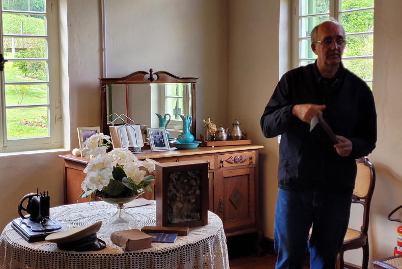 A primeira parada, ainda na manhã dessa quinta-feira, foi na Casa Paulina, um espaço de eventos situado em Linha Olavo Bilac, a 12 quilômetros do centro de Venâncio Aires. A propriedade pertence à família Meurer há quase um século e foi o local de nascimento e criação de todos os filhos do casal Algunda e Berthold Meurer. Após a morte deles, os filhos decidiram pela venda de tudo, mas as propostas não agradaram e o filho Lauri acabou adquirindo a casa e demais estruturas adjacentes.