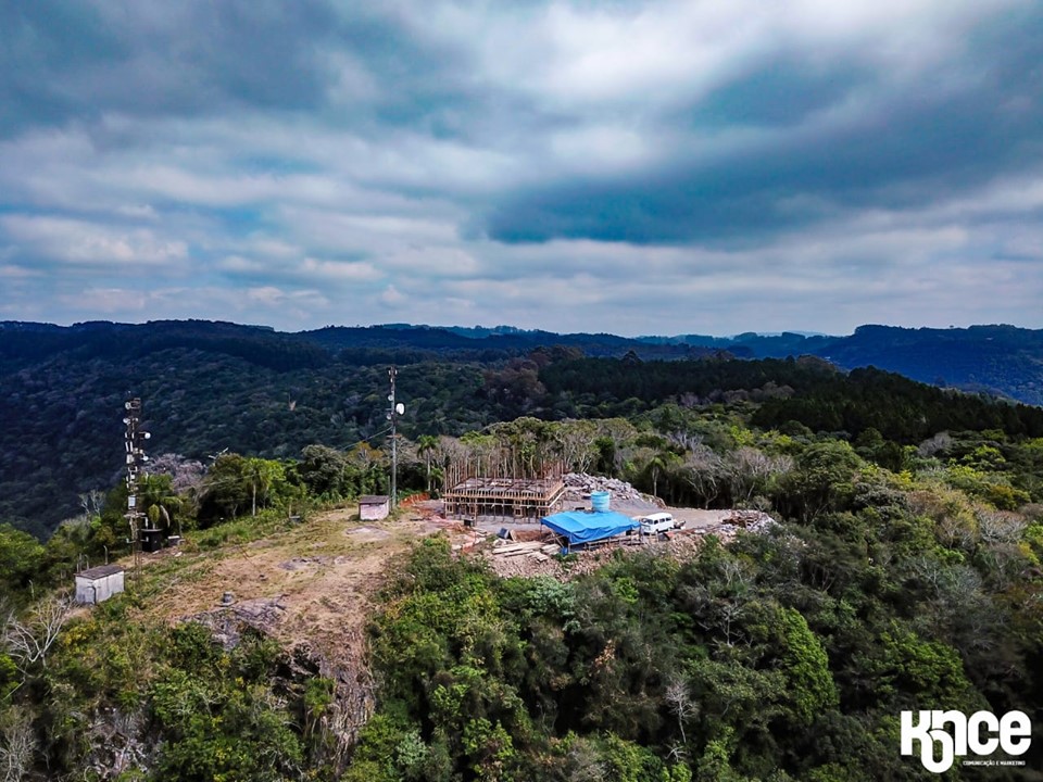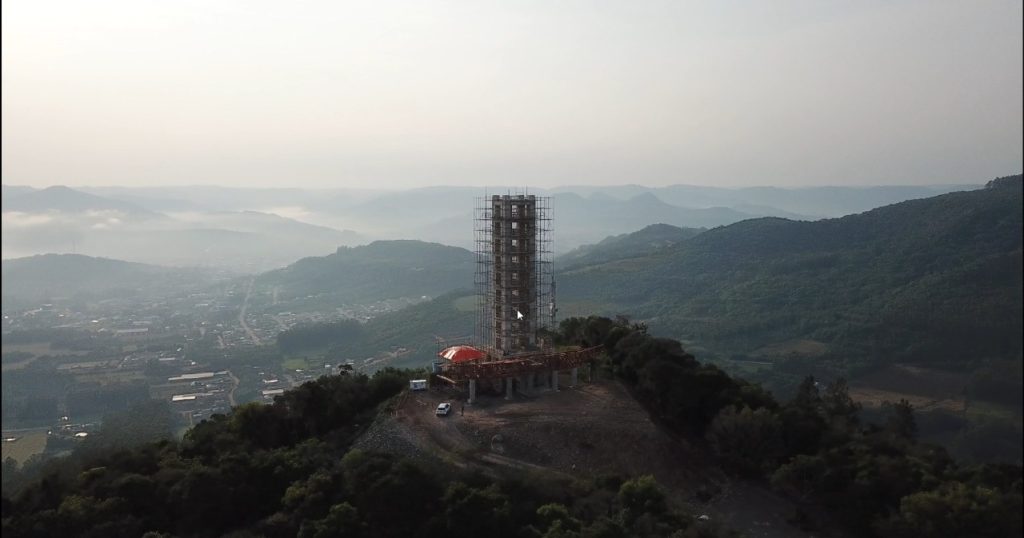 A construção já se impondo na paisagem do Vale do Taquari, visível a longa distância