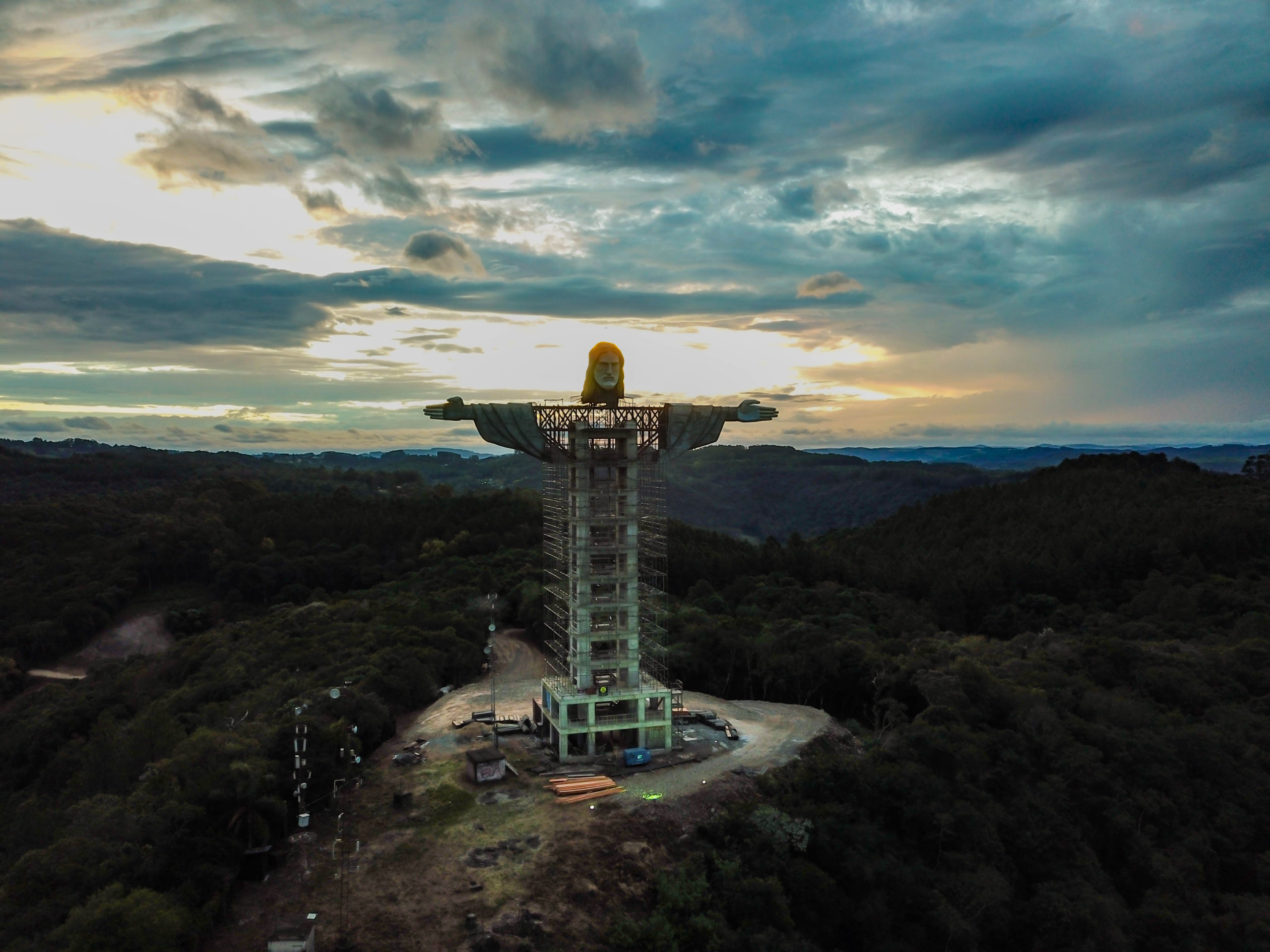 Construção, que agora recebeu cabeça e bracos, teve início em 2019 e fora paralisada em março do ano passado, com a pandemia | Foto: Konce Agência/Divulgação