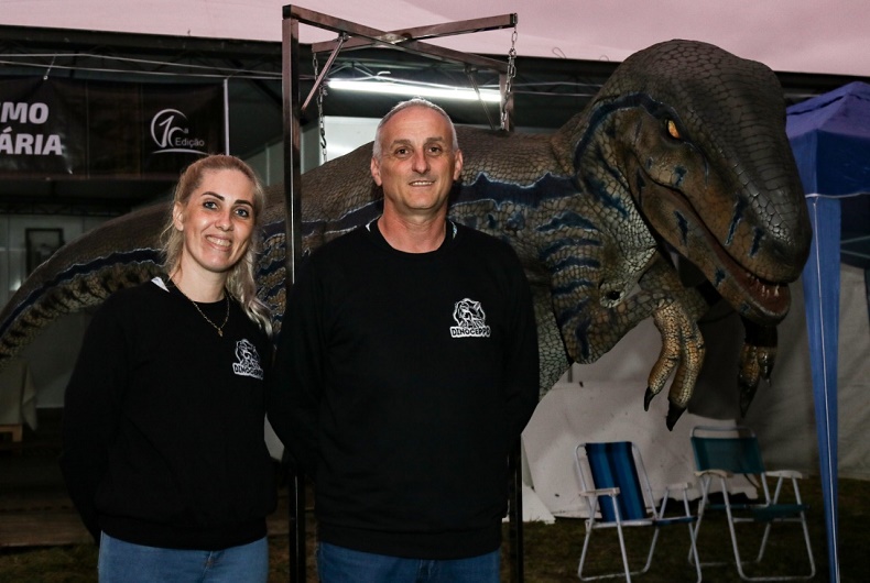 Na abertura da 10ª Exposição Industrial, Comercial, Serviços e Agronegócios de Candelária (Expocande), nessa quinta-feira, 28, no Parque de Exposições Itamar Vezentini, uma atração especial chamou a atenção: o DinoCeppo, um dinossauro realista que diverte adultos e crianças. O empresário Marcelo Ceppo, que atua com o boneco junto da companheira Ana Paula da Silva, conta que o dinossauro participa de eventos há menos de um ano.