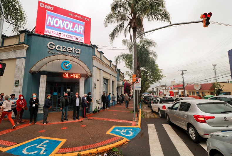 A entrega de mais um lote das Sacolas do Bem movimentou o começo deste sábado, 16, no Centro de Santa Cruz do Sul. Foram esgotadas as 300 unidades disponíveis, na troca dos cupons recortados da Gazeta do Sul e preenchidos pelos leitores (nesta edição, eram válidos os de número 31 a 35). O início da distribuição foi às 8 horas, quando já havia filas em frente à Gazeta, na Rua Ramiro Barcelos. O número limitado de unidades foi esgotado em pouco menos de 30 minutos.