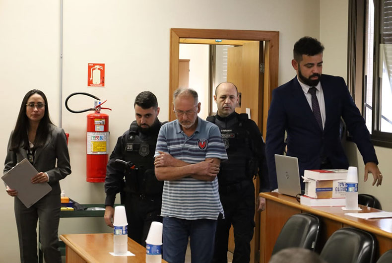 Iniciou às 13h30 desta quinta-feira, 6, o julgamento de Servo Tomé da Rosa. O pedreiro de 70 anos responde em júri popular, no Fórum de Santa Cruz do Sul, pelo assassinato da ex-companheira Heide Juçara Priebe, de 63 anos. A sessão é presidida pela juíza Márcia Inês Doebber Wrasse. Quatro homens e três mulheres foram sorteados para formar o conselho de sentença. O plenário está lotado. Muitos familiares e amigos da vítima foram acompanhar a sessão.