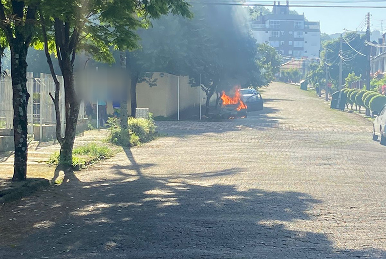 Um incêndio destruiu um veículo na manhã desta segunda-feira, 14, no Bairro Santo Inácio, em Santa Cruz do Sul. O sinistro teria iniciado por volta das 8 horas, na Rua José de Alencar, próximo ao cruzamento com a Rua Senador Alberto Pasqualini.