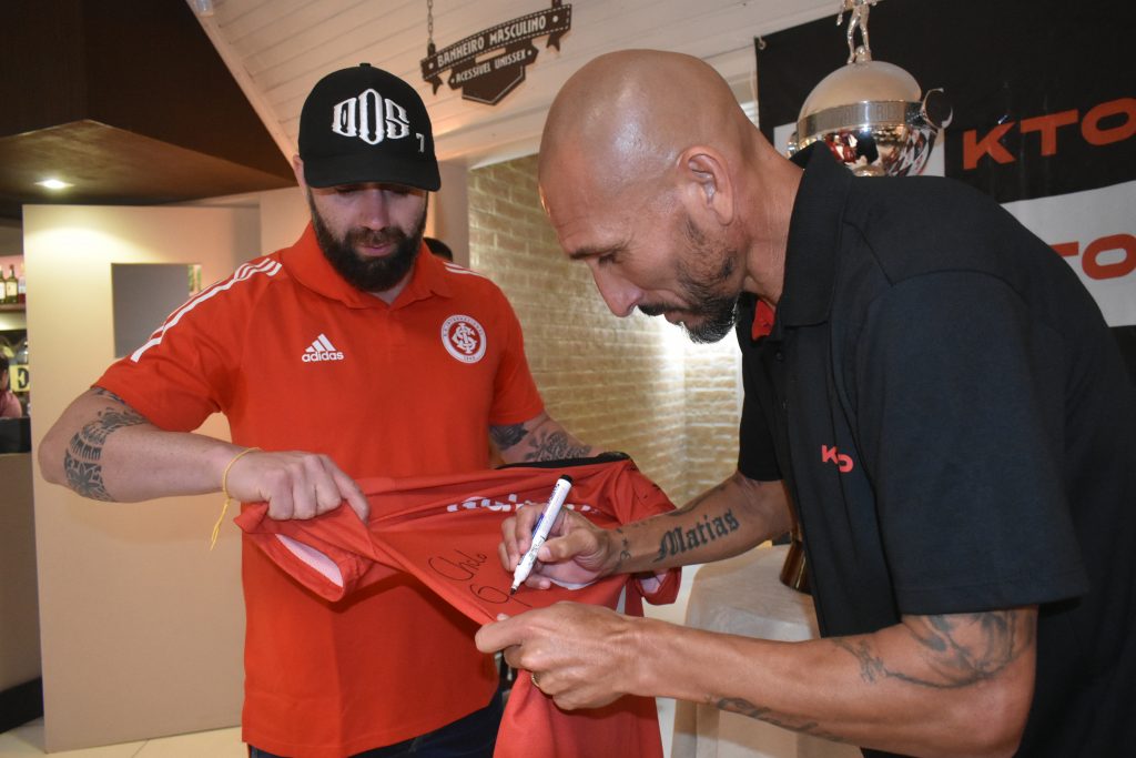 A torcida colorada de Santa Cruz do Sul teve uma visita ilustre na noite do último domingo, 20. Um dos grandes nomes da história recente do clube esteve na cidade para uma confraternização no Restaurante Gruta dos Índios, no Parque da Gruta. Com muita simpatia, o ex-jogador Pablo Horácio Guiñazu, que jogou no Internacional entre os anos de 2007 e 2012, recebeu os fãs, conversou, brincou e tirou fotos com os torcedores. O evento também foi beneficente, com a arrecadação de alimentos não-perecíveis, que serão doados à Copame de Santa Cruz do Sul