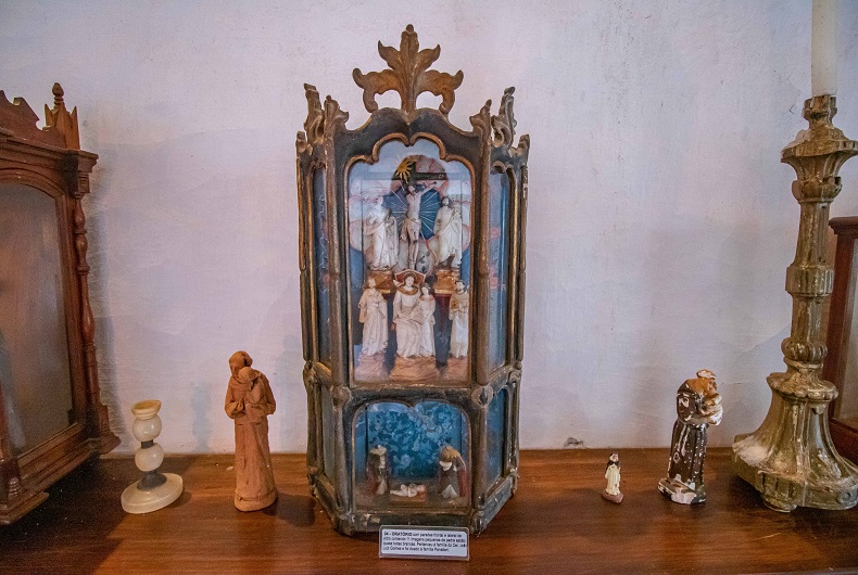 O museu tem peças com valor histórico imensurável. Algumas chamam muito a atenção, como o Cristo de fisionomia indígena, ainda da época jesuítica. Ou a imagem de São Nicolau como “santo do pau oco”, que antigamente era usado para guardar objetos de valor. Além de um missal de 1784, há uma peça onde se apoiava o caixão nas missas de corpo presente. E a indumentária dos primeiros padres.
