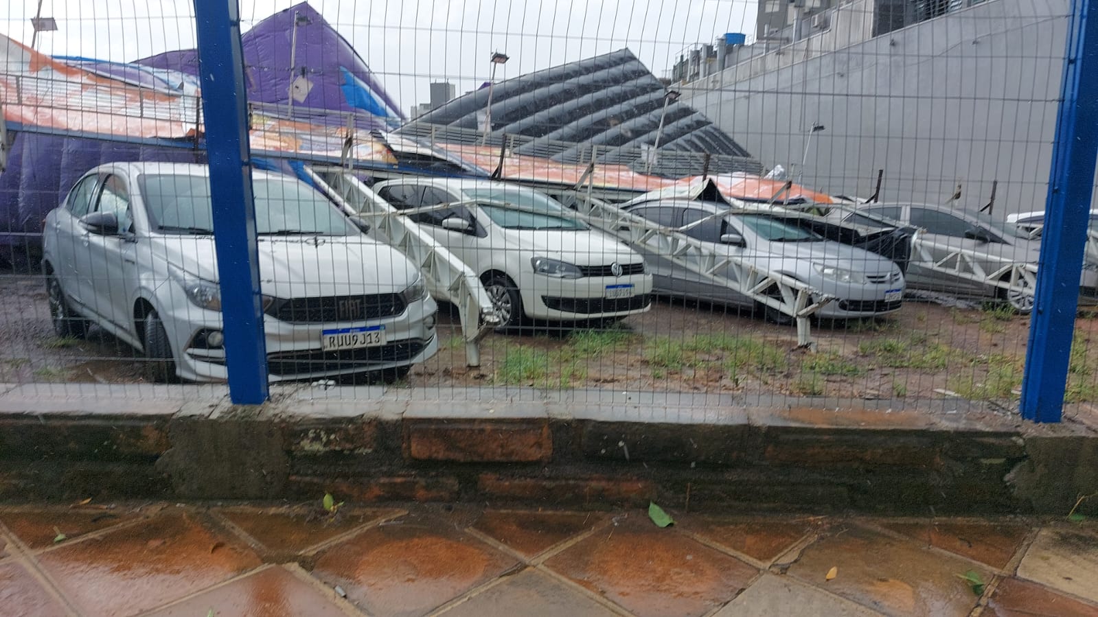 Um temporal com ventos fortes e queda de granizo atingiu Santa Cruz do Sul na tarde deste sábado, 25. A situação durou cerca de 15 minutos, mas causou prejuízos pela cidade. Há relatos de destelhamentos, falta de luz, queda de árvores e alagamentos em diversos pontos da cidade. Parte do telhado da arquibancada do Estádio dos Plátanos, caiu com a força do vendaval. Um outdoor localizado no estacionamento do Shopping Santa Cruz acabou caindo em cima de carros que estavam estacionados.