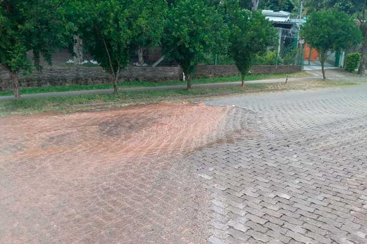 Em meio a uma das maiores estiagens da história de Santa Cruz do Sul e região e ao pedido de cuidados com o desperdício de água, uma cena chama atenção de quem passa pelo Bairro Bonfim neste domingo, 15. Na esquina da Rua do Moinho com a Rua Olinda, um vazamento é visto com água escorrendo em abundância.