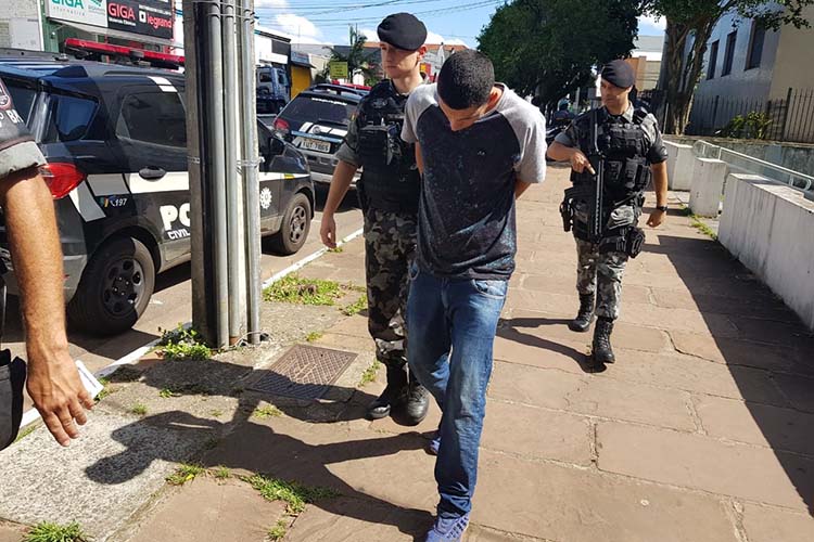 A BM estava fazendo um patrulhamento de rotina na Rua Manoel Antônio de Barros, quando viu o veículo suspeito. A Rocam começou a acompanhar a moto e acionou o Pelotão de Operações Especiais (POE). Os ladrões foram interceptados na esquina da Paul Harris com a Avenida Deputado Euclydes Nicolau Kliemann, no Bairro Arroio Grande. Os homens chegaram a colidir na viatura da polícia. Um deles também tentou fugir a pé, mas foi preso. Após, eles foram encaminhados para a Delegacia de Polícia para autuação em flagrante.