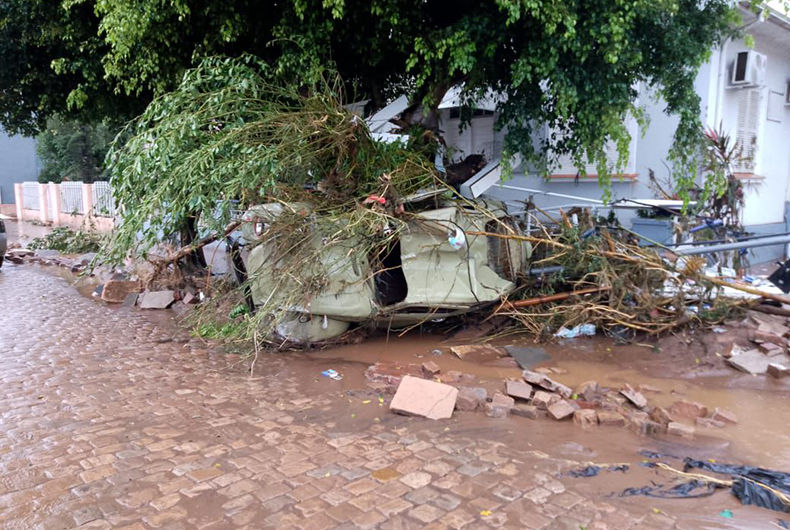 Mesmo com a água ainda tomando parte das ruas, moradores e comerciantes de Sinimbu já tentavam um recomeço na manhã desta quarta-feira, 1º, após a enchente devastar a área central, bairros e localidades do interior. Vídeos que chegaram até a redação do Portal Gaz mostram o Centro com muito barro, postes caídos, veículos tombados, estruturas de casas e pavimentação pelas ruas: um cenário de destruição.