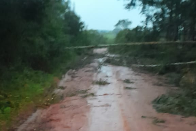 Além disso, estradas estão obstruídas e árvores e postes caíram, deixando o interior da cidade às escuras. “Precisamos desobstruir as vias para conseguir chegar nas residências e avaliar a extensão dos estragos. Os acessos estão encharcados e com muito lodo, por isso a necessidade de suspender as aulas”, esclarece. A Defesa Civil irá distribuir lonas para os necessitados e, caso seja necessário, o salão comunitário da localidade poderá ser requisitado e disponibilizado como abrigo.
