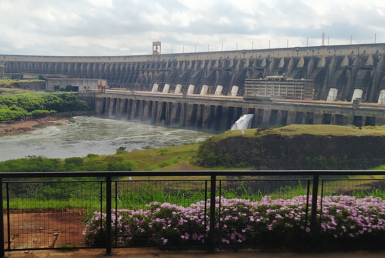 A barragem de Itaipu vista a partir do mirante do lado brasileiro da fronteira