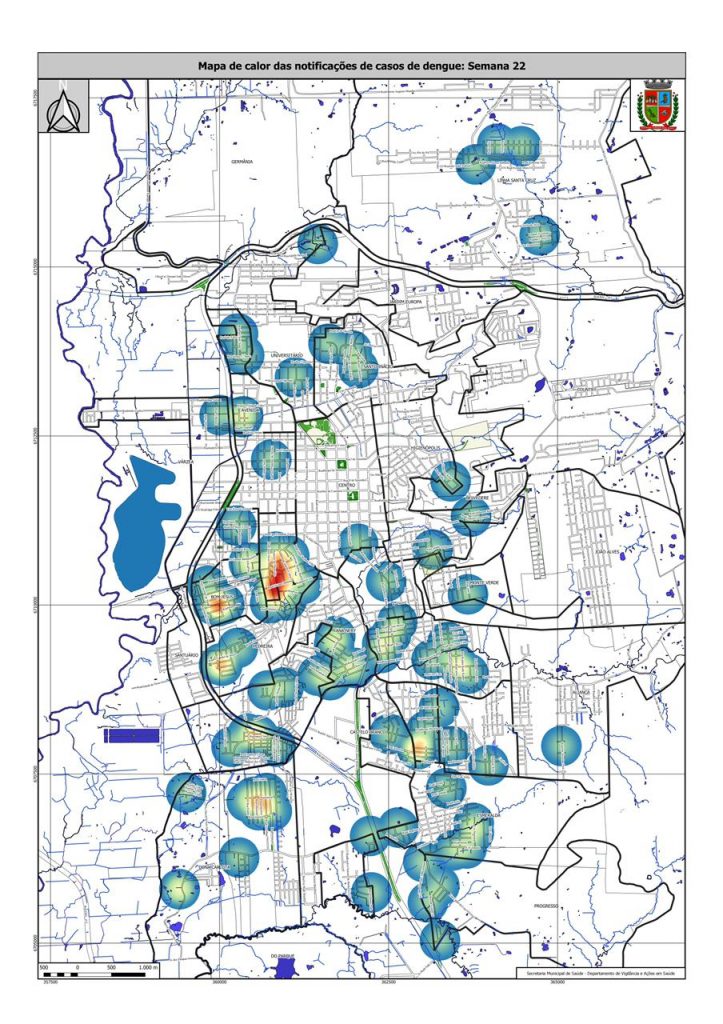 A Prefeitura de Santa Cruz do Sul informou que, além da divulgação do boletim informativo relativo aos casos de dengue no município, a Vigilância Sanitária passará a divulgar também um mapa de calor semanal com os casos suspeitos da doença. Quanto mais tonalizado na cor vermelha, maior o número de casos suspeitos em uma região da cidade.
