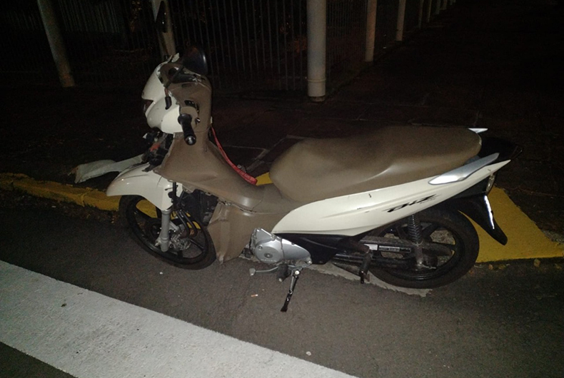 Na moto, a caranegam, paralamas e as bengalas quebraram ou entortaram. A Brigada Militar atendeu a ocorrência. O caso foi registrado como acidente de trânsito com lesão corporal em uma vítima, seguido de fuga do acidente por parte do motorista do carro. A Polícia Civil vai investigar o fato. Câmeras de segurança serão analisadas para tentar descobrir qual o outro veículo envolvido na colisão.