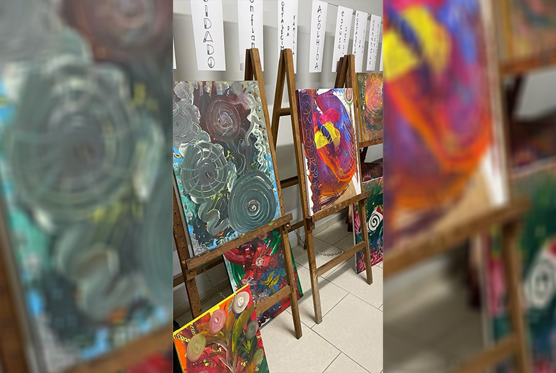 A arteterapeuta Voní Eidt, curadora da mostra, realiza oficinas com pinturas, bordados, costuras, forração francesa, textos, entre outros, com crianças, adolescentes e adultos em situação de vulnerabilidade social e medidas socioeducativas. Também trabalha com um grupo LGBTQI+ no Creas e Cras do Bairro Battisti. “Existem momentos de integração, trocamos ideias, permitimos a autoria de pensamentos e expressões. Quem vier visitar nossa exposição poderá sentir um pouco de todos esses olhares e sentimentos”, ressalta Voní.