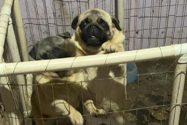Vítimas de maus-tratos, cães da raça pug são resgatados de canil irregular