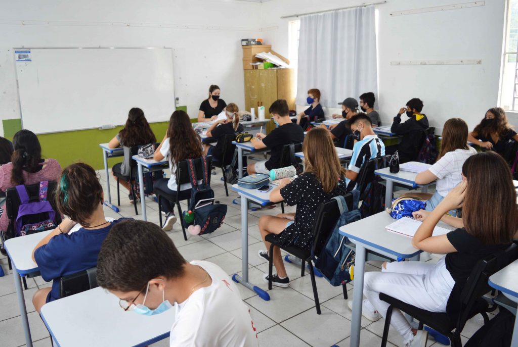 Nessa semana, portanto, educadores e estudantes voltaram às salas de aula, seguindo as determinações em prevenção à Covid-19. O início deste ano letivo na E.M.E.B. Borges de Medeiros, no Bairro Maieron, foi marcado pela ansiedade e alegria do reencontro entre colegas e professores. Afinal, apesar de em 2021 terem tido aulas presenciais desde maio, o formato de escalonamento (divisão dos alunos em turmas com aulas em semanas diferentes) fez com que alguns colegas não tivessem contato frente a frente por meses, a não ser pelas telas.